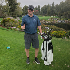 Richard C. signaling golf-related pleasure at Aviara Golf Course in Carlsbad.
