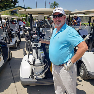 Steve P. repping his Clublender set of Titleist clubs with a matching hat.