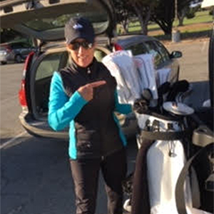 Laura C. showing off her set of TaylorMade M6 women’s clubs.